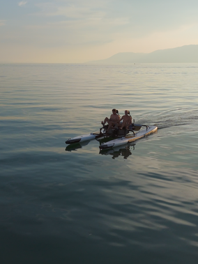 Mit dem Otter-Wasserbike erleben Sie den Lago Maggiore auf völlig neue Weise. Leise, stabil und umweltfreundlich gleiten Sie über das Wasser – allein oder zu zweit. Die intuitive Steuerung, der elektrische Antrieb und die bequeme Sitzposition machen jede Ausfahrt zu einem entspannenden Abenteuer inmitten der Natur.