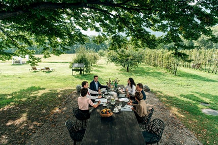 Looking for something special? We also offer the option of holding meetings outdoors. Whether at our Carpino table under a hundred-year-old tree or in the middle of the orchard in our park, we can offer you something very special.