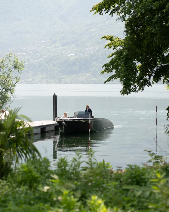 Il nostro skipper vi verrà a prendere al porto di Locarno e vi condurrà "à la Venice" direttamente alla Spiaggia del Castello del Sole, dove vi aspetta un bicchiere di Spumante della nostra cantina come speciale check-in della vostra vacanza.