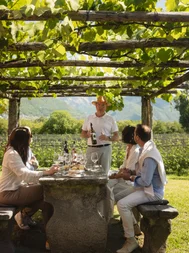 Presso l'Enoteca Alimentare, situata proprio di fronte ai vigneti, potrete trovare tutti i nostri prodotti di produzione propria, oltre a una selezione di specialità ticinesi. Concedetevi un bicchiere di vino e accompagnatelo con un piccolo aperitivo scegliendo tra formaggi, salumi e snack del nostro assortimento locale. È possibile prenotare visite e degustazioni direttamente alla reception.