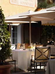 La cucina è caratterizzata dalla leggerezza mediterranea e si basa sulla cucina classica francese. C'è anche un pizzico di gustosa avventura, ispirata ai viaggi culinari di Mattias Roock. Questo mix conferisce alle creazioni dello Chef un sapore molto speciale. Se il tempo lo permette, potrà gustare un pranzo mediterraneo o una cena romantica nel Cortile Leone. Scelga il suo accompagnamento tra 530 eccellenti vini selezionati con cura dal nostro team.