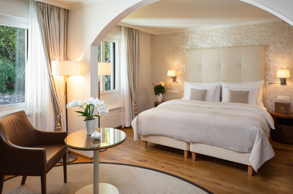 Family-owned for over 60 years, it is passionately managed by host and owner Hubertus Real, who has a deep sense of hospitality. The gourmet restaurant Marée (awarded 16 Gault Millau points) delights guests with creative, regionally inspired cuisine. Surrounded by a picturesque park, designed by renowned landscape architect Enzo Enea, the hotel offers a unique retreat for connoisseurs and business travellers alike.